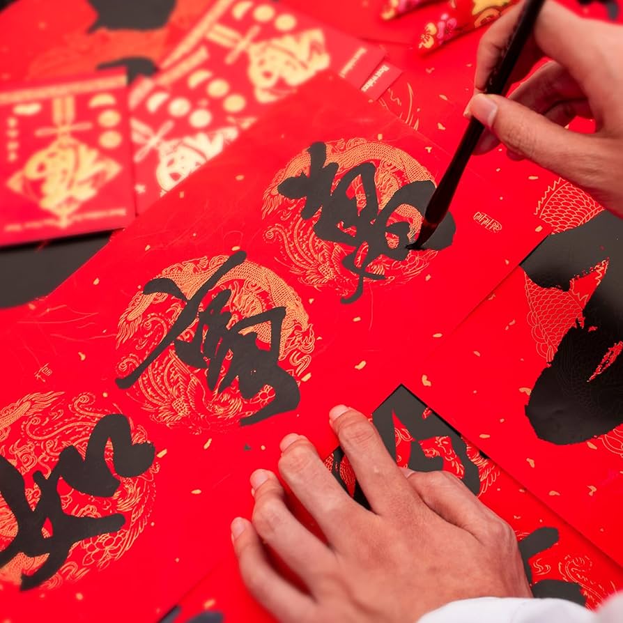 To writing Chinese calligraphy on red paper to ‘protect’ our house from the evil ‘Nian’ spirit.